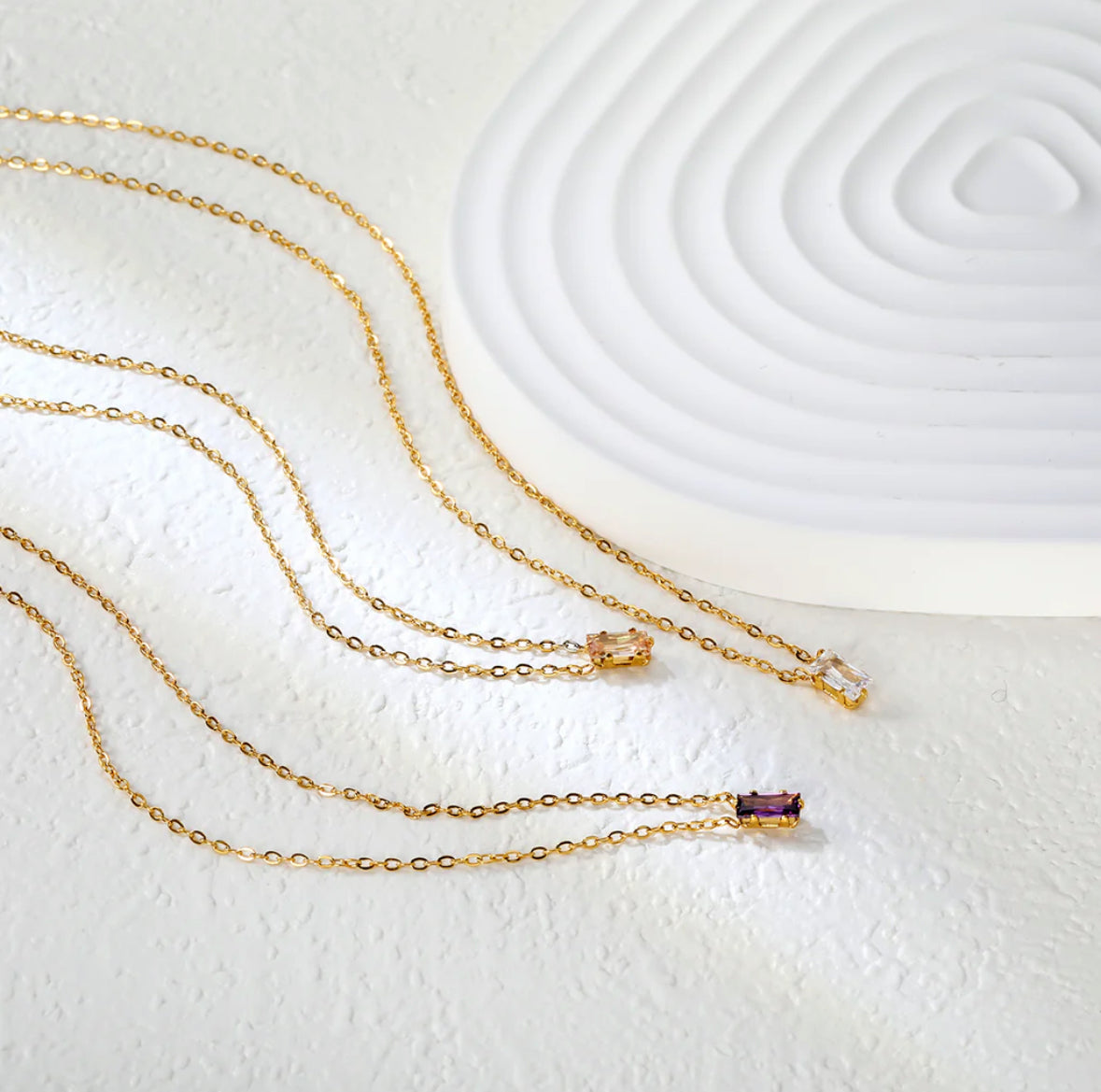Meticulously crafted golden necklace featuring a 4.5*7.4mm square-cut zircon pendant available in white hues. The precision-set stone is suspended from a delicate 0.3mm cross chain that provides exceptional light reflection while maintaining structural integrity. Measuring 40cm with a 5cm extension for versatile wear, the piece is finished with a refined 6mm round tail plaque.